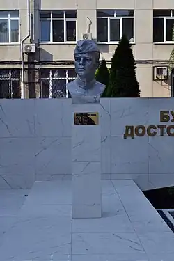 - Средняя общеобразовательная школа №1 также носит имя героя.
