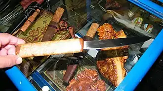 - Имеется ещё вариация, называемая «батыйа» — меч или мачете, длиной от 500 мм, с изогнутым клинком с такой же асимметричной заточкой, в основном, использовали как пешню и для охоты на медведей[3].