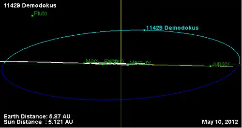 - Орбита астероида Демодок и его положение в Солнечной системе