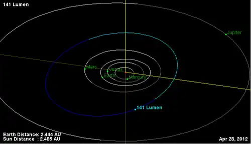 (141) Люмен (фр. Lumen) — довольно крупный астероид главного пояса, который движется по орбите, близкой к орбитам астероидов семейства Эвномии, но, судя по его спектральным характеристикам, сам не входит в это семейство. Температура на поверхности астероида колеблется от 71 K (−202 °C) до 275 K (+2 °C). Астероид обнаружил Поль Генри 13 января 1875 года и назвал в честь книги «Lumen: Récits de l’infini», которую написал французский астроном Камиль Фламмарион[1].