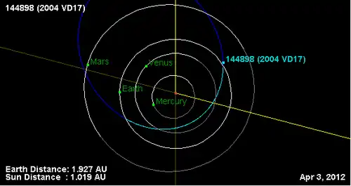 - Орбита астероида 2004 VD17 и его положение в Солнечной системе