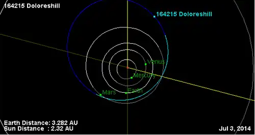 - Орбита астероида Долоресхилл и его положение в Солнечной системе