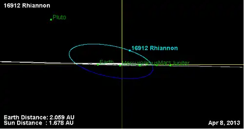 - Орбита астероида Рианнон и его положение в Солнечной системе