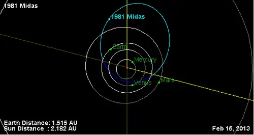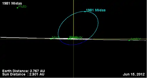 - Орбита астероида Мидас и его положение в Солнечной системе