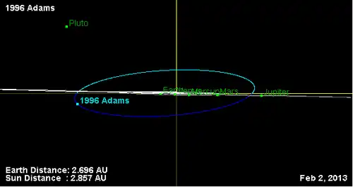 - Орбита астероида Адамс и его положение в Солнечной системе