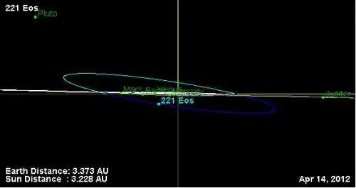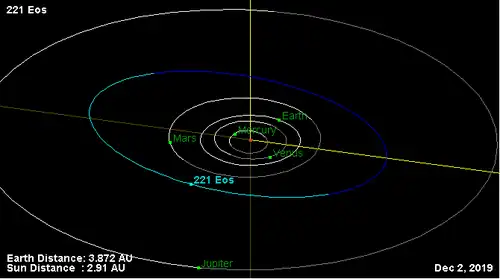(221) Эос (др.-греч. Ἕως) — типичный астероид главного пояса, принадлежащий к очень редкому спектральному классу K и является главным представителем одноимённого семейства. Астероид был обнаружен Иоганном Пализой 18 января 1882 года в Вене и в 1884 году назван по имени древнегреческой богини зари Эос, в честь открытия новой обсерватории, которая должна была стать новой зарёй для венской астрономии[1].