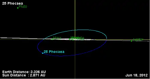 - Орбита астероида Фокея и его положение в Солнечной системе
