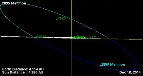 - Орбита астероида Мемнон и его положение в Солнечной системе