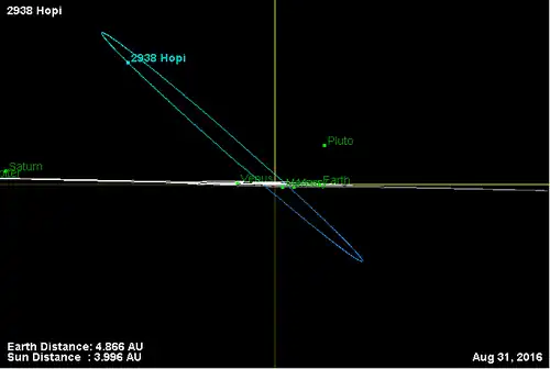 - Орбита астероида Хопи и его положение в Солнечной системе