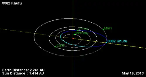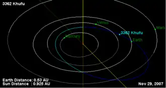 - Орбита астероида Хуфу и его положение в Солнечной системе
