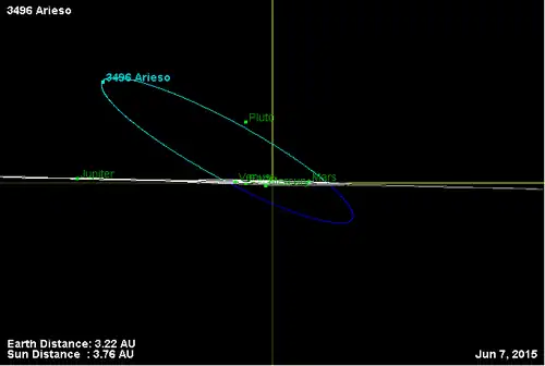 - Орбита астероида Ариесо и его положение в Солнечной системе