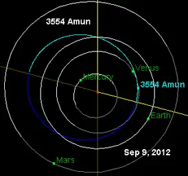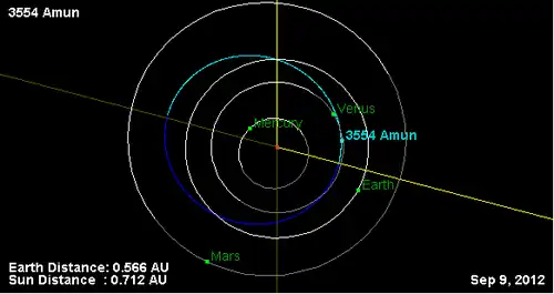 Астероид обладает довольно вытянутой орбитой, из-за которой в процессе своего движения вокруг Солнца он пересекает не только орбиту Земли, но и Венеры. Амон один из немногих астероидов, которые подходят к Венере практически вплотную; так, во время сближений в 1964, 2034 и 2103 годах его расстояние до планеты будет равняться всего 10 млн км[2].