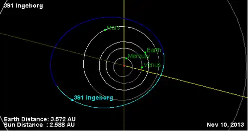 - Орбита астероида Ингеборг и его положение в Солнечной системе