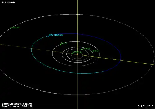 - ↑ Pilcher, Frederick (October 2012), Rotation Period Determinations for 47 Aglaja, 252 Clementina, 611 Valeria, 627 Charis, and 756 Lilliana, Minor Planet Bulletin, vol. 39, pp. 220–222, Bibcode:2012MPBu...39..220P.