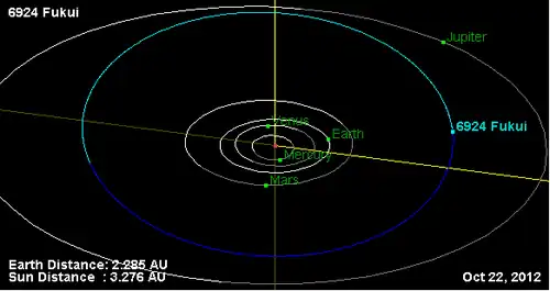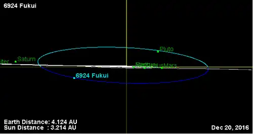 - Орбита астероида Фукуи и его положение в Солнечной системе