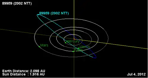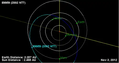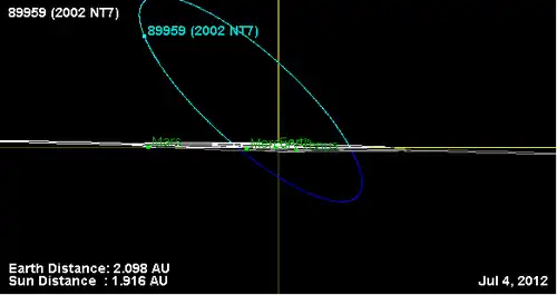 - ↑ «JPL Close-Approach Data: 89959 (2002 NT7)». 2011-09-12 last obs (arc=57 years). Дата обращения: 5 июля 2012. Архивировано 16 марта 2020 года.