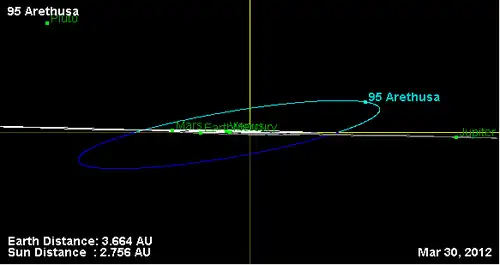 - Орбита астероида Аретуса и его положение в Солнечной системе