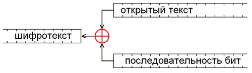 Формирование выходной последовательности происходит путём сложения потока исходного текста с генерируемой последовательностью (гаммой). Особенность операции XOR заключается в том, что применённая чётное число раз, она приводит к начальному значению. Отсюда, декодирование сообщения происходит путём сложения шифротекста с известной последовательностью.