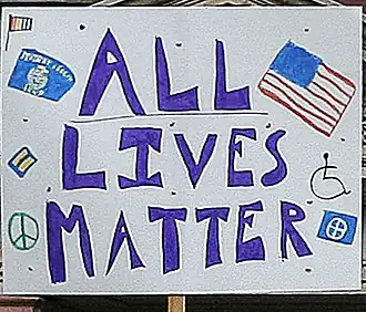 Более того, слоган «All Lives Matter» многие представители левых движений считают расистским, так как, по их мнению, он направлен на замалчивание проблем чернокожих[15]. Общественное осуждение заставило многих публичных людей принести извинения за публикацию постов с хештегом #AllLivesMatter. Например, Дженнифер Лопес удалила из своего аккаунта в Твиттере пост с данным хештегом, а рэпер Fetty Wap, также удаливший пост с хештегом #AllLivesMatter, написал в своем аккаунте в Инстаграме следующее: «Я не до конца понял значение этого слогана». Дональд Трамп и Хиллари Клинтон также подвергались нападкам и общественному осуждению за употребление слогана «All Lives Matter»[11] .