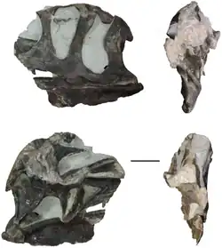 ![]() Скелетная реконструкция голотипа (известный материал показан белым) | |||||||||||||||||||||||||||||||||||||||||