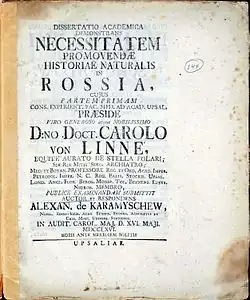 | Май 1764 | Карамышев, Александр Матвеевич | Necessitas Promovendae Historia Naturalis In Rossia | 7 |