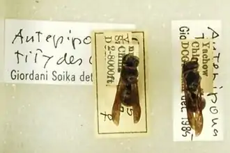 - 1 2 3 Nguyen, Lien Thi Phuong; Nguyen, Anh D.; Dang, Hoa T.; Yamane Seiki; Engel, Michael S. Taxonomic review of the potter wasp genus Antepipona de Saussure, 1855 (Hymenoptera, Vespidae, Eumeninae) from Vietnam, with descriptions of two new species and keys to the Oriental fauna (англ.) // Zoosystema : Журнал. — Paris: Museum National d'Histoire Naturelle, 2024. — Vol. 46, no. 27. — P. 697—722. — ISSN 1280-9551. — doi:10.5252/zoosystema2024v46a27.