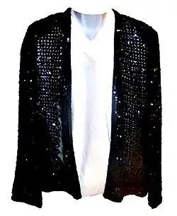 Самую первую перчатку, расшитую стразами, Джексон сделал сам вручную. Певец надевал её на своих выступлениях ещё в 1970-х годах, но после шоу, посвящённого 25-летию Motown, зрители стали отождествлять её именно с «Billie Jean». Тогда это была обычная кожаная перчатка для гольфа, украшенная 1 619-ю стразами, сделанная одним из ассистентов семьи Джексонов. В дальнейшем кожа была заменена на спандекс. Во время Bad World Tour певец просматривал плёнки с концертами и услышал потрескивание: стразы, нашитые со стороны ладони, царапали микрофон, впоследствии, стразы с внутренней стороны перчатки были срезаны, и до конца тура Джексон надевал её лишь на правую руку, в которой держал микрофон[75]. Первый чёрный жакет для выступлений был сшит из сетчатой ткани, на которую были нашиты пайетки. С годами внешний вид жакета практически не менялся, менялась только ткань[75].