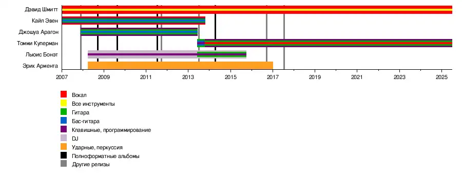- Дэвид Шмитт — вокал, ударные, гитары, клавишные, музыкальное программирование, синтезаторы, фортепиано, перкуссия (2007-настоящее время)