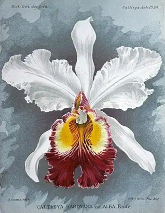 ![]() Cattleya ×hardyana Ботаническая иллюстрация из книги The Orchid Album, 1886 г. | ||||||||||||