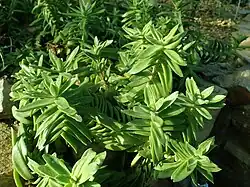 Невысокие многолетние кустарники, достигающие высоты до 30 см. Обычно они сильно разветвлены, с листьями, которые позднее опадают. Форма листьев варьирует от обратно-ланцетных до обратно-яйцевидных, иногда эллиптических или линейных. Размеры листьев составляют (6-)10-30(-40) х (2-)4-15(-20) мм, они могут быть как тупыми, так и острыми, сжатыми в дорзивентральном направлении и слегка выпуклыми с обеих сторон. Листья покрыты войлочной поверхностью, их окраска может варьироваться от зеленой до коричневой[3].