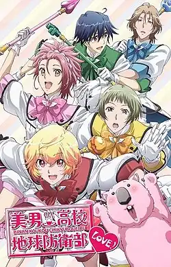 Binan Koukou Chikyuu Bouei-bu Love! (яп. 美男高校地球防衛部LOVE! бинан ко:ко: тикю: бо:эй-бу рабу) — аниме-сериал студии Diomedéa, премьера первой серии которого состоялась 7 января 2015 года[3]. Режиссёр — Синдзи Такамацу, сценарист — Митико Ёкотэ [4][5].