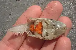 Мелкого размера ракообразные, длина тела до 35 мм, ширина — до 25 мм. Самки почти вдвое крупнее самцов. Имеют пять пар ног и три пары плеопод, клешни отсутствуют[3].