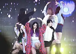 ![]() GFriend в феврале 2020 года. Слева направо: Омджи, Ынха, Юджу, Синби, Йерин и Совон. | |