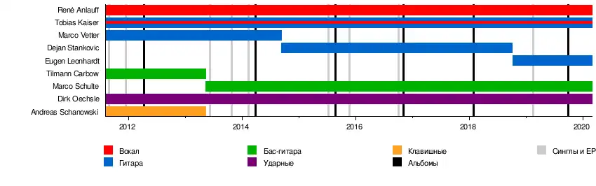 René Anlauff - вокал Tobias Kaiser - гитара Eugen Leonhardt - гитара Marco Schulte - бас-гитара Dirk Oechsle - ударные |
