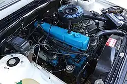 Двигатель Blue дебютировал в 1980 году на VC Commodore[2]. Он являлся дальнейшим развитием двигателя Red и включал в себя несколько улучшений. Наиболее заметное изменение — полная переработка головки блока цилиндров. Головка была модернизирована до 12-портовой конструкции с отдельными портами для каждого цилиндра и пересмотренным распределительным валом T5. Коленвал 3,3-литрового двигателя имел противовесы на каждом ходу, а шатуны стали более прочными. В стандартную комплектацию входил двухкамерный карбюратор Varajet, а также выпускной коллектор с двойным выпуском и распределитель Bosch HEI. Объём варьировался от 2,85 до 3,3 л.