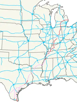 - Первоначально построенный участок с дополнениями из Индианаполиса до Порт-Гурона — SIU 1