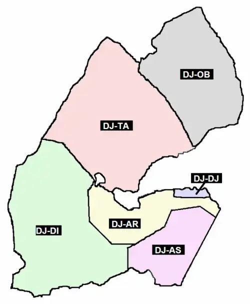Геокоды 5 провинций, 1 столицы административно-территориального деления Джибути.