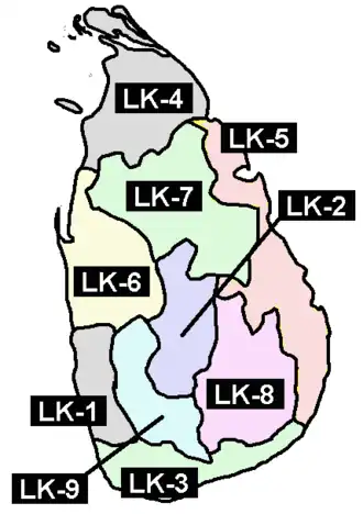 Геокоды 9 провинций административно-территориального деления Шри-Ланки.