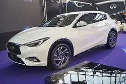 Infiniti QX30 — мини-кроссовер, построенный на базе Q30 и выпускающийся с 2016 до 2019 года. От Q30 QX30 отличается увеличенными до 18 дюймов колёсами (можно также заказать автомобиль с колёсами 21 дюйм) и на 30 мм дорожным просветом[23]. Также немного отличается высота и ширина колеи[24]. В остальном автомобили практически одинаковы[25].