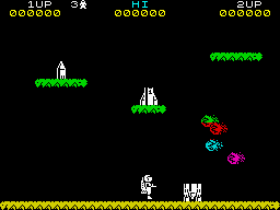 На первом уровне разбросаны три части ракеты. Игрок должен собрать их и перенести к месту сборки. На последующих уровнях ракета остаётся собранной, а игрок должен собирать топливо для неё, которое сбрасывается в различных точках экрана. После сброки или заправки ракеты игрок переходит на следующий уровень.