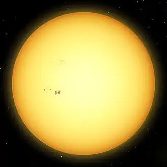 Звезда немного менее массивная, чем Солнце, но с радиусом примерно на 5 % больше и температурой около 6031 К