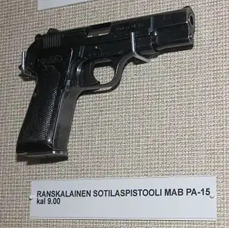 MAB PA-15 (фр. Pistolet Automatique 15) — французский самозарядный пистолет калибра 9 мм, представленный Manufacture d'armes de Bayonne в 1966 году с целью замены MAC Mle 1950. Всего было произведено 100 000 пистолетов в период с 1965 по 1981 года[1].
