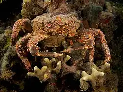 - ↑ Wilber, Dara H.; Wilber, T. Payson Jr. (1989). The effects of holding space and diet on the growth of the West Indian spider crab Mithrax spinosissimus. Journal of Experimental Marine Biology and Ecology. 131 (3): 215–222. doi:10.1016/0022-0981(89)90113-5. S2CID 84169238.