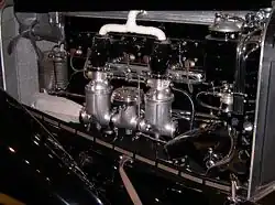 Двигатель оснащался механическим компрессором Рутса установленным вертикально в передней части двигателя, за радиатором. Вращение на компрессор передавалось с помощью конической передачи, он вращался в четыре раза быстрее коленвала. Нагнетатель подавал воздух под давлением до 0,3 бар на вход карбюратора. В приводе компрессора стояло сцепление, разомкнутое в обычном состоянии. Когда водитель прожимал педаль газа почти до самого пола, сцепление включалось, добавляя двигателю 60 л. с. мощности.
