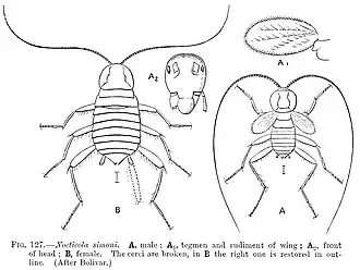 ![]() Самец Nocticola gonzalezi (вверху) и самка (внизу) | ||||||||