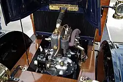 Проверенный двухцилиндровый рядный двигатель автомобиля, работа над которым в компании началась ещё в 1902 году, имел чугунный блок цилиндров отлитый за одно с, расположенной рядом, камерой сгорания, типичная для нижнеклапанного двигателя конструкция. Питался мотор от карбюратора с восходящим потоком смеси, зажигание осуществлялось с помощью установленного спереди двигателя магнето. Жидкостное охлаждение мотора обеспечивал термостат и огромный радиатор, установленный за двигателем. Такая компоновка являлась отличительной чертой автомобилей Renault начала XX века. Подобный мотор устанавливался на Renault AG, которые в виде такси в больших количествах бегали по Парижу[2].