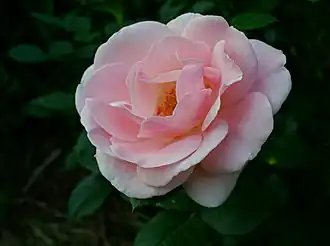 Цветки в кистях по 3—5 штук, махровые, чашевидные или плоские, светло-розовые, диаметром 9—10 см. Увядшие лепестки осыпаются.