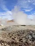 Этот район характеризуется интенсивной вулканической активностью с серными полями, грязевыми озёрами и бассейнами с кипящей грязью. Вопреки распространённому мнению это не гейзеры. В конце 1980-х годов была предпринята попытка промышленного использования, но это оказалось нерентабельным. В этом районе осталось несколько искусственных отверстий, самое известное из которых выпускает струю газов на высоту до 50 метров. Основные грязевые озёра находятся на высоте 4850 м.