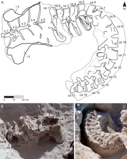 Обнаруженный командой Фанти типовой экземпляр (каталогизированный как ONM DT 1-36) состоял из фрагментов костей таза, нескольких хвостовых и крестцовых позвонков[1][3].