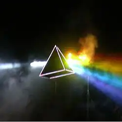 Прохождение луча света сквозь призму на лицевой обложке альбома демонстрирует явление дисперсии света в физике. Обратная сторона обложки изображает конвергенцию спектра через перевёрнутую призму, что позволяет, соединив концы развёрнутых обложек вместе, достичь повторяющегося до бесконечности замкнутого в кольцо оптического эффекта. Данное изображение полностью отражает идею альбома. Идея перенести символ призмы на обратную сторону обложки принадлежала Роджеру Уотерсу[72]. По утверждению Сторма Торгерсона, в призме на обложке заложены три основных элемента: во-первых, это напоминание о световых эффектах, являющихся важнейшей частью концертных выступлений Pink Floyd; во-вторых, на обложке присутствует символика треугольника, обозначающая амбициозность, одну из главных тем песен альбома; в-третьих, это простота изображения — ответ Ричарду Райту, который попросил изобразить на обложке что-то «простое, смелое и драматичное»[77].
